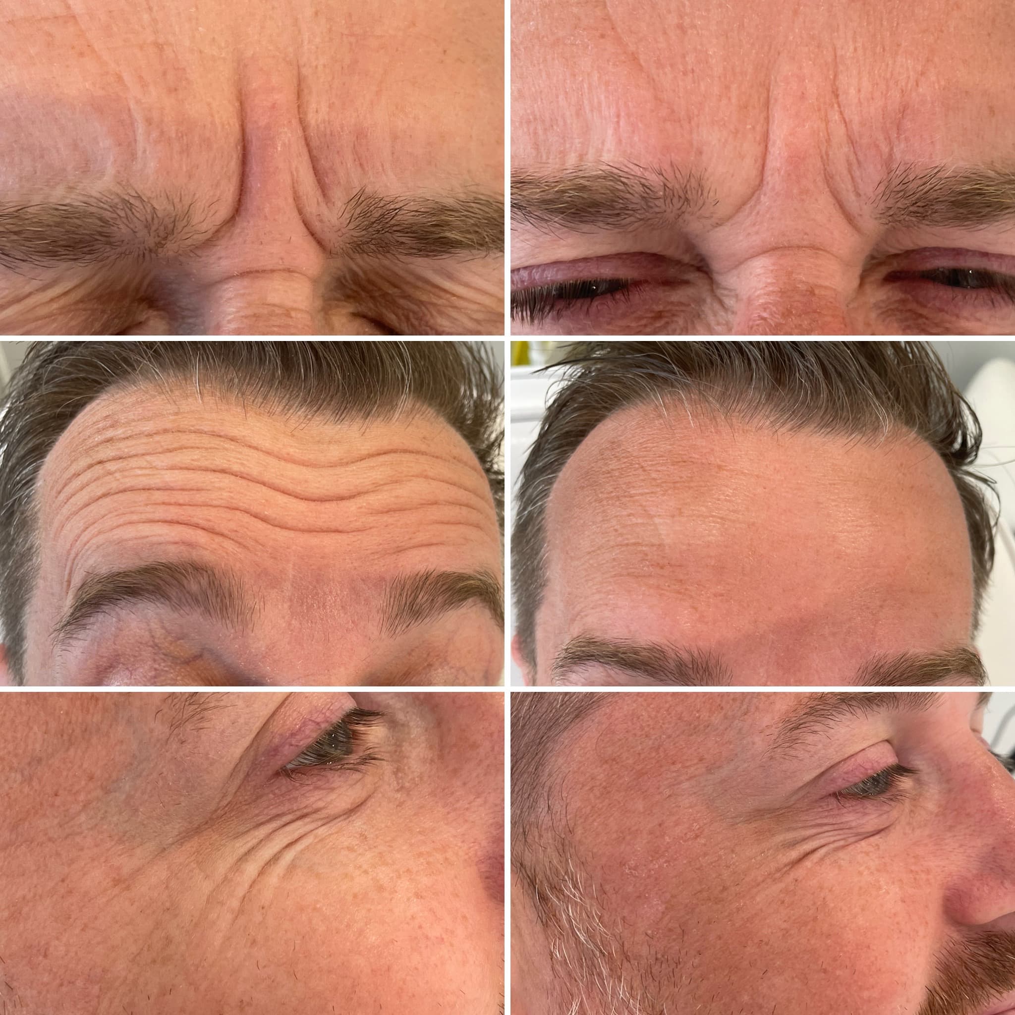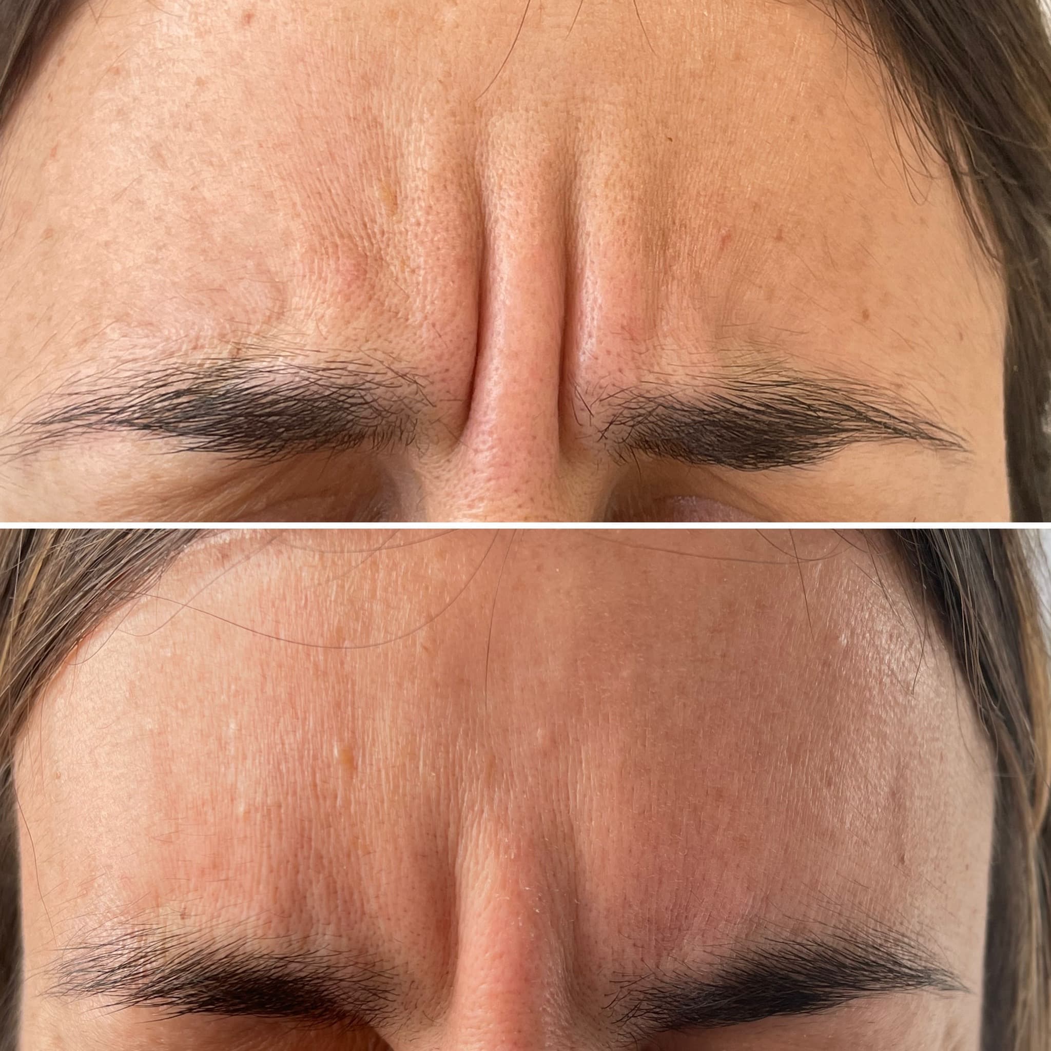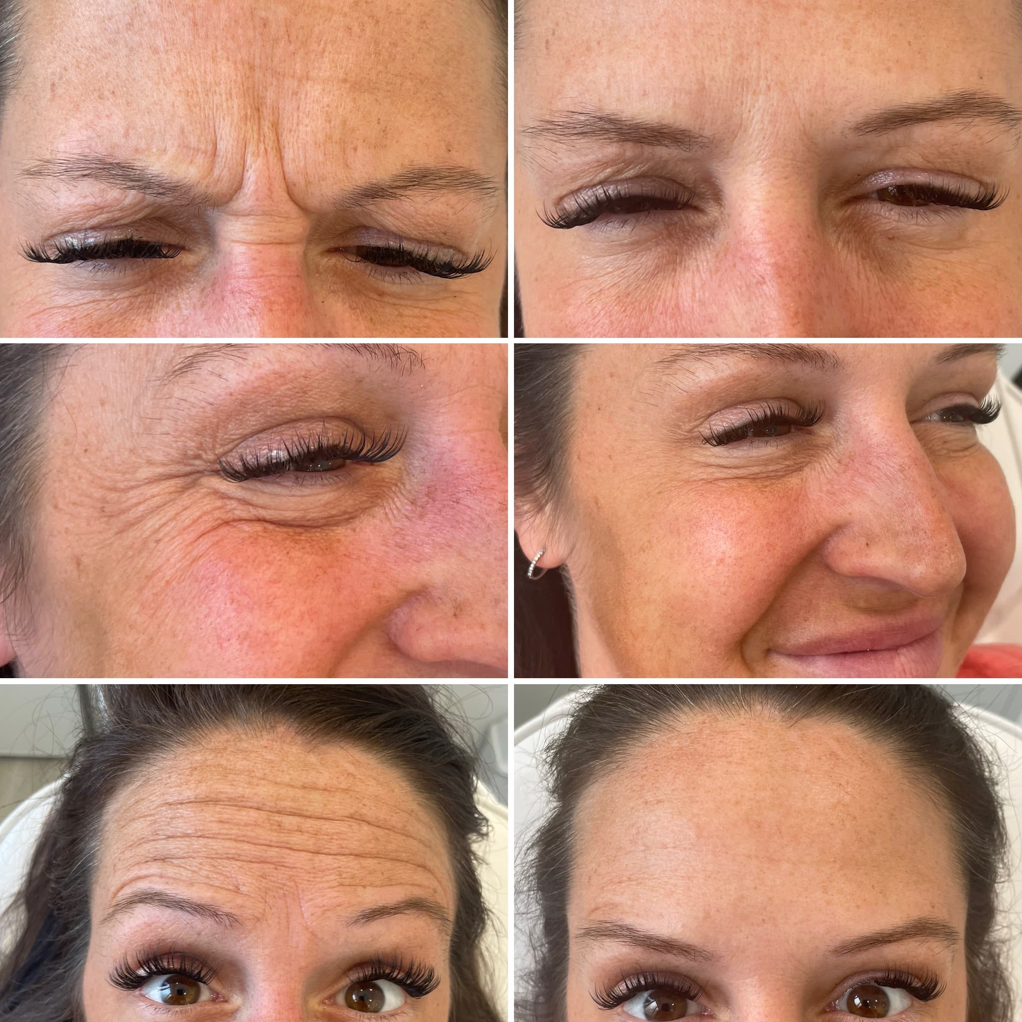 Areas to treat are commonly Frown, Forehead & Eyes (crows feet)